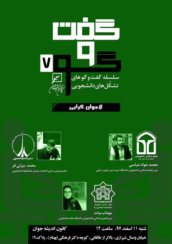 هفتمین نشست از سلسله گفتوگوهای تشکلهای دانشجویی با عنوان «جوان گرایی» ، به همت کانون اندیشه جوان برگزار میشود. در این نشست که در روز…